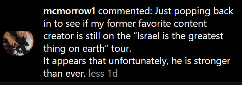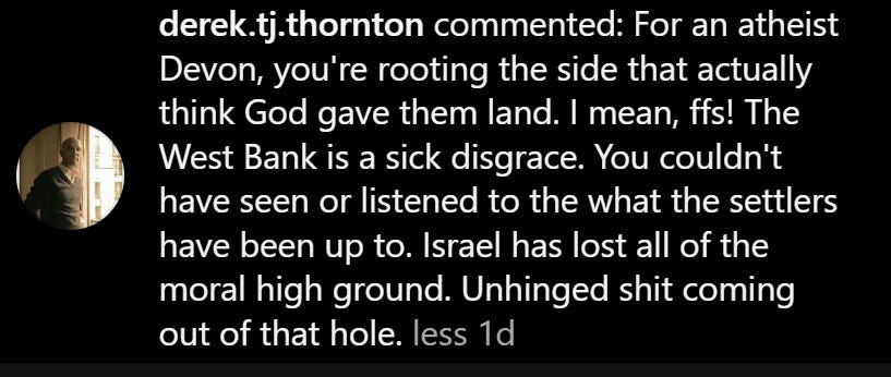 Hey Devon, long time fan here. You are 100% right about Israel. Good for you for sticking to your guns. The world is so morally lost. It makes me depressed about the future.