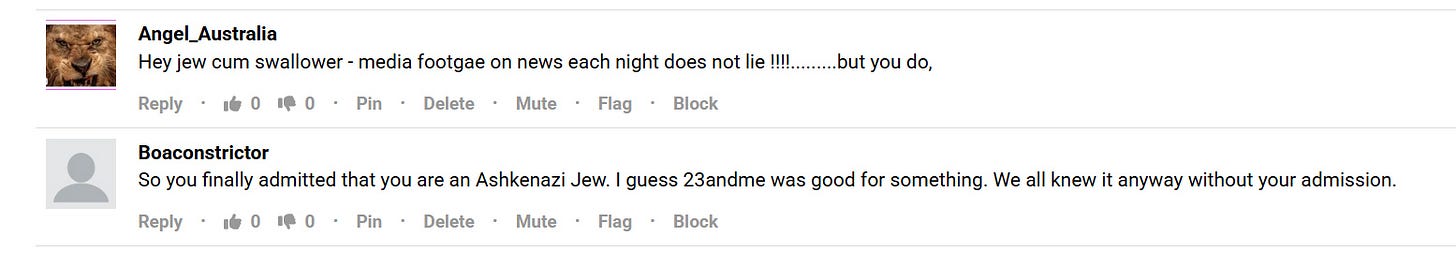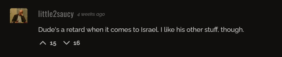 We shall see how it all plays out, but please know that I ain’t changing one single fucking thing about what I think, say or feel about Israel, or any other topic that happens to come up because some loser bitch-made mongoloids in the comment section had nothing better to do in their lives than puke out their stupid homosexual rage.