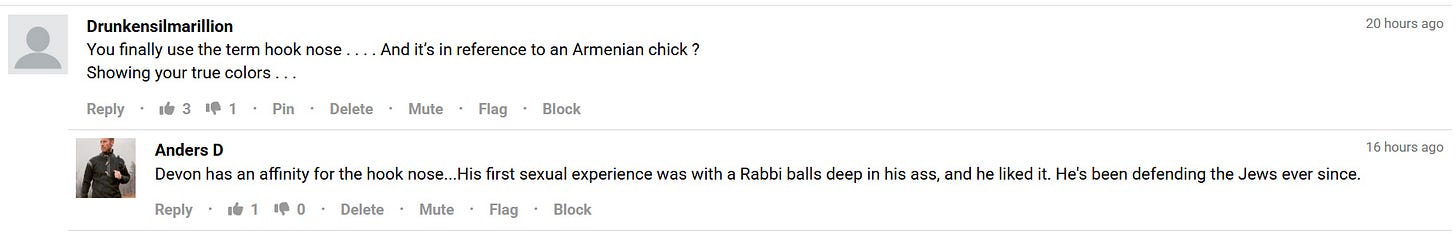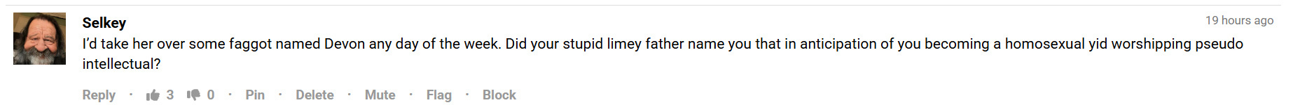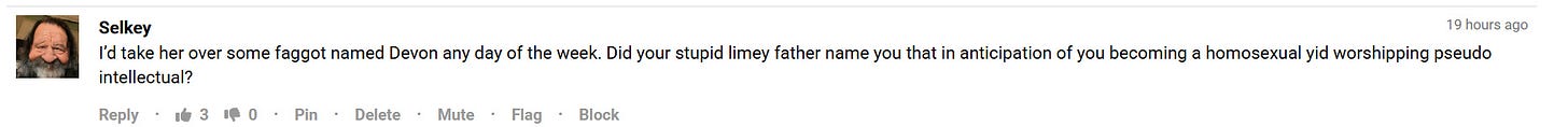 Here’s a comment calling me a faggot. Then he insults the Englishness of my father randomly and then called me a homosexual and pseudo intellectual. So this is the level of ‘commenter’ that we run into on the internet. Now you might begin to understand why I notoriously post and ghost. It’s because the comments are all worthless impotent closeted gay rage.